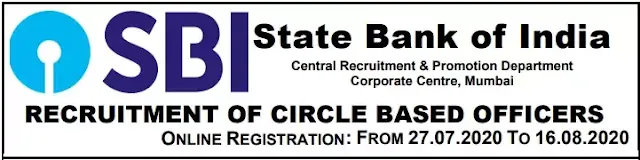 Apply Online on the prescribed format for SBI Circle Based Officers Vacancies 2020 at SBI website from 27/07/2020 to 16/08/2020 only.