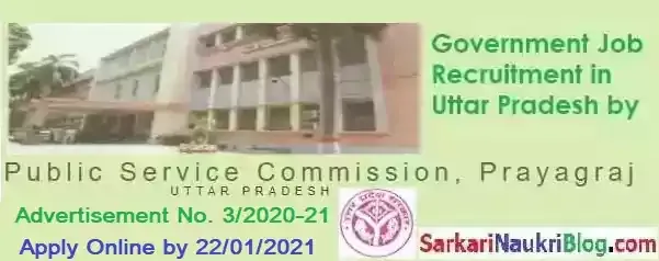 Online applications on the prescribed format are invited by Uttar Pradesh (UP)  Public Service Commission (PSC), Prayagraj for various Government Job (Sarkari Naukri) Vacancy posts in for various different Departments/Organisations of Government of Uttar Pradesh  (Advertisement No.: 3/2020-21).
