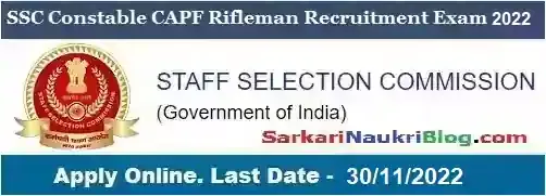Staff Selection Commission (SSC) will hold a Combined All India Open Competitive Recruitment Examination (Computer Based Examination) for recruitment of Government Job vacancies for the recruitment to the 45284 Group-C vacancy posts of Constable (General Duty) in Central Armed Police Forces (CAPF) viz. Border Security Force (BSF), Central Industrial Security Force (CISF), Central Reserve Police force (CRPF), Indo Tibetan Border Police (ITBP), Sashastra Seema Bal (SSB), Secretariat Security Force (SSF), Rifleman (General Duty) in Assam Rifles (AR) and Sepoy in Narcotics Control Bureau (NCB) for the year 2022. SarkariNaukriBlog